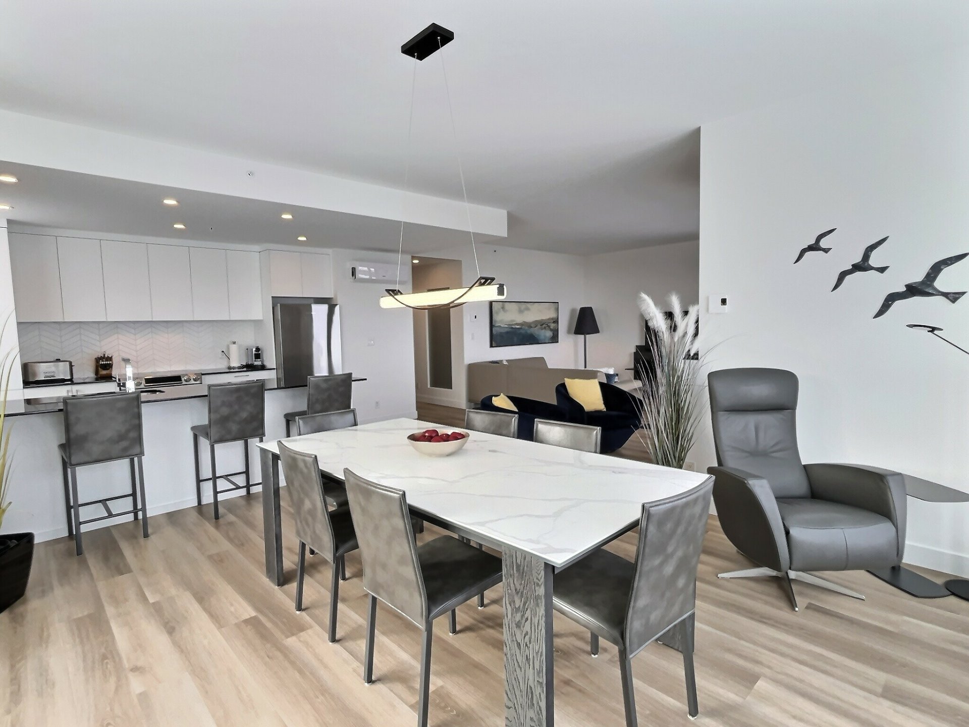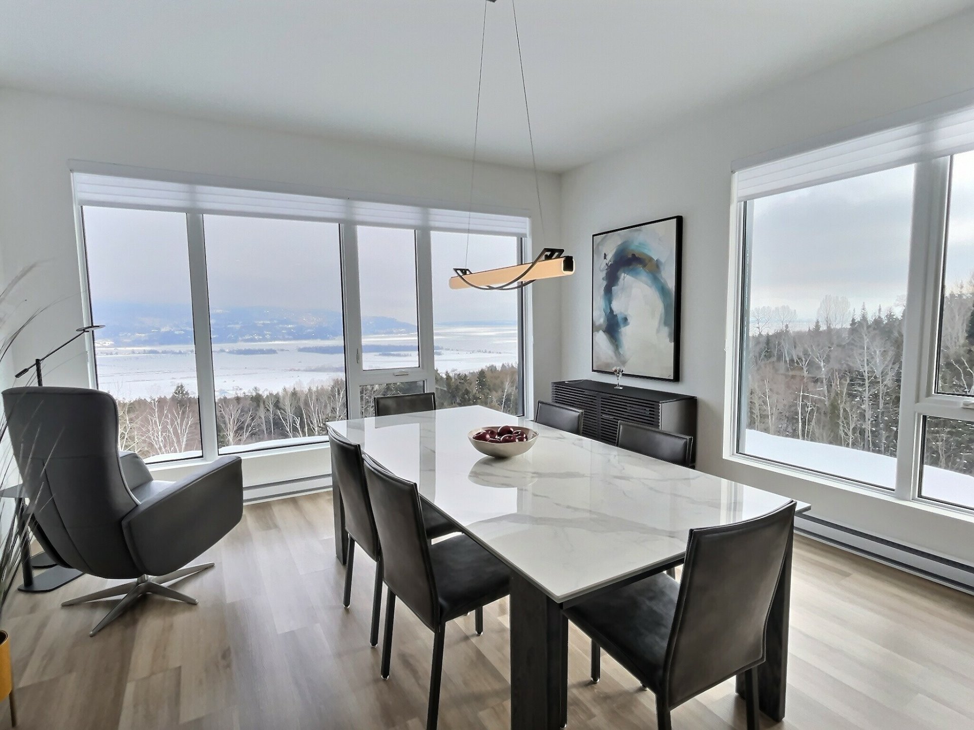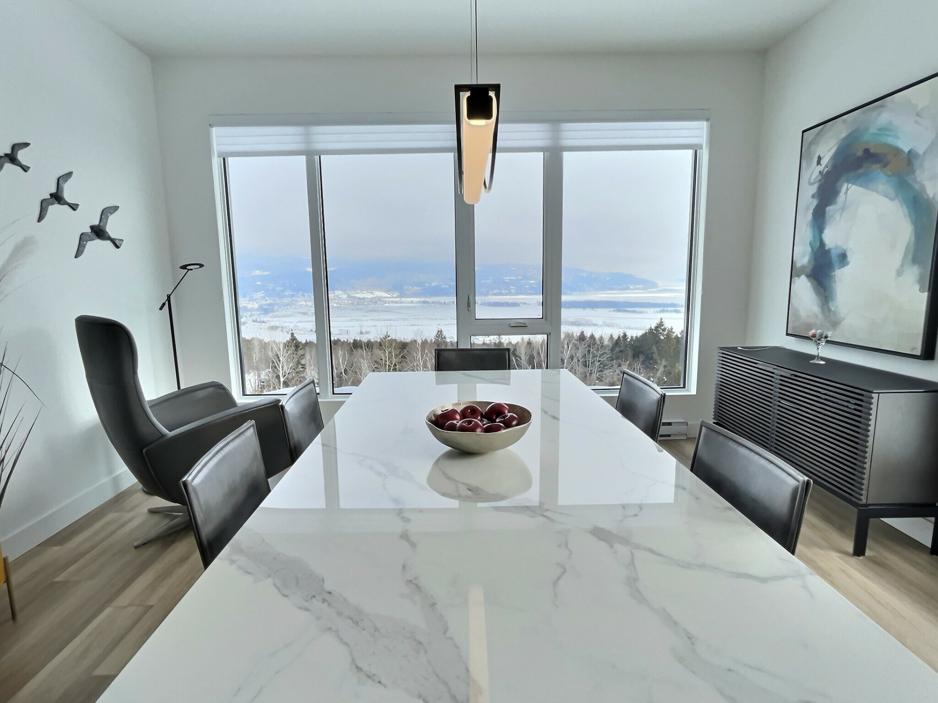 Exclus : La chaise en cuire grise et la lampe dans la salle à manger
