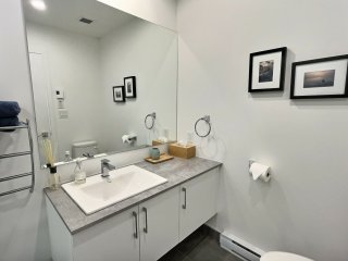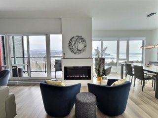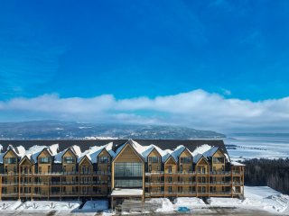 Superbe unité de coin (201) avec vue spectaculaire sur le fleuve Saint-Laurent, l'Île-aux-Coudres et Baie-Saint-Paul. Offrant 3 chambres et 2 salles de bain, cette propriété lumineuse de plain-pied propose un espace de vie moderne et raffiné. Vendue entièrement meublée avec mobilier haut de gamme, soigneusement choisi. Entretien impeccable, véritable clé en main. Idéale pour location à court terme ou usage personnel. Accès à piscine intérieure et salle d'entraînement. Stationnement extérieur avec borne électrique, rare. Emplacement recherché, cadre exceptionnel. Revenus locatifs intéressants. Opportunité unique à saisir rapidement.